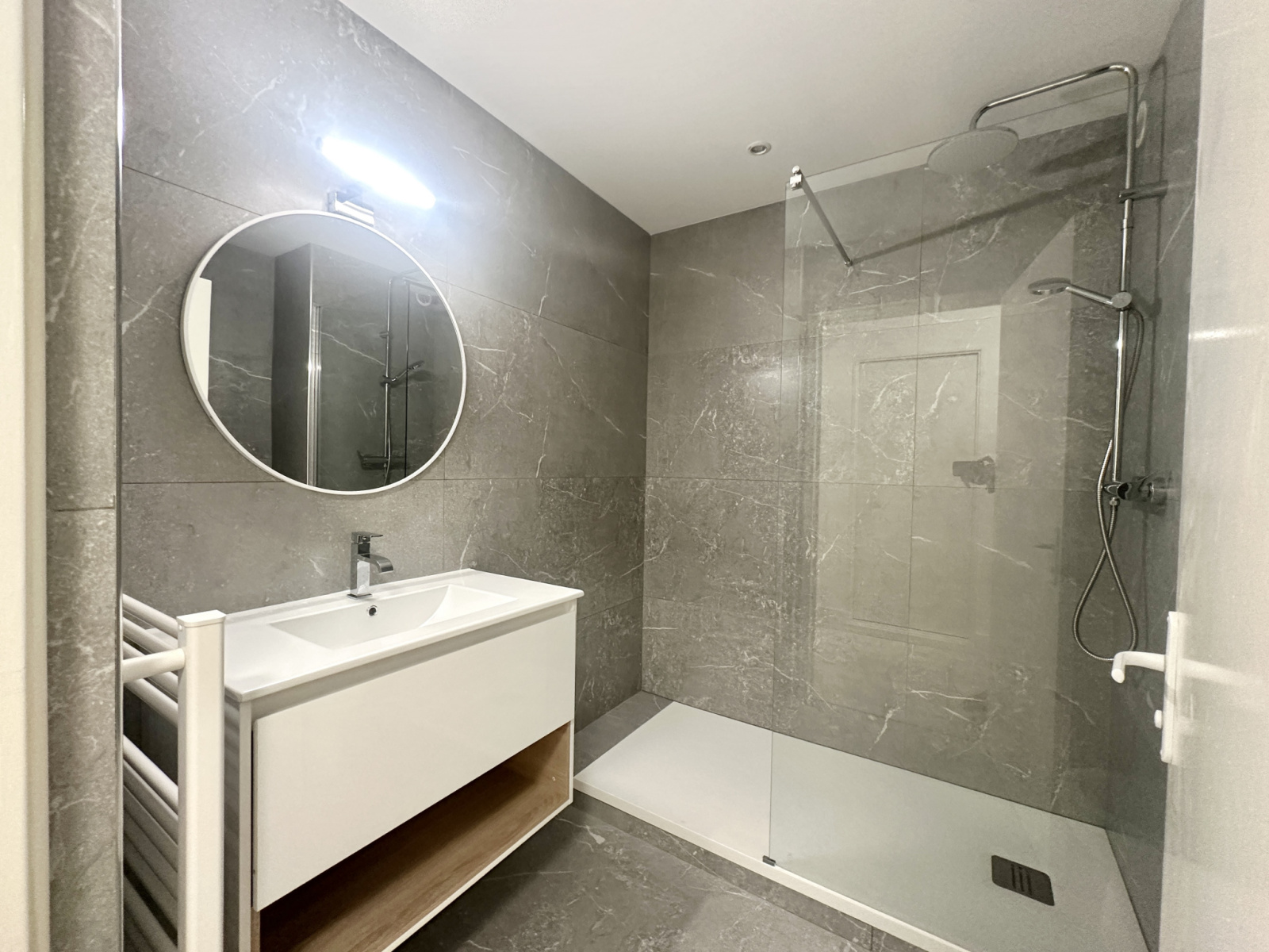 L'appartement d'une surface de 47,64m2 se compose d'une entrée avec placards de rangement, un beau séjour avec petit balcon, une cuisine aménagée séparée, une chambre avec placards et une salle d'eau rénovée avec goût. Un débarras sur la palier de l'étage complète ce bien.