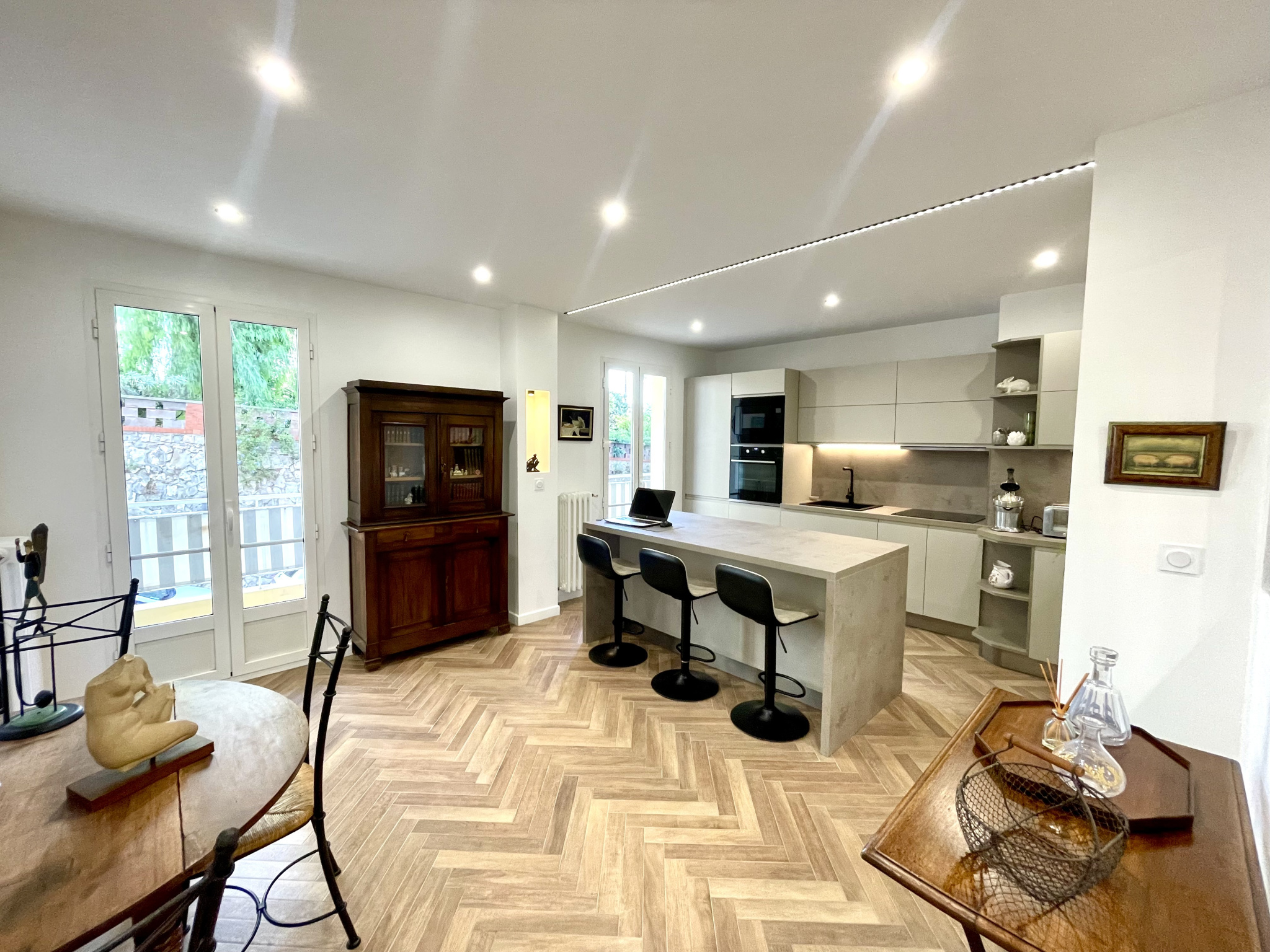 Entièrement climatisé, il dispose d’un grand salon, d’une cuisine américaine avec salle à manger, d’une chambre parentale de 14 m², d’une chambre d’environ 12 m², d’une salle d’eau, d’un WC séparé, d’un espace dressing, de deux balcons de 9 m² ainsi que d’une grande cave de 6 m².